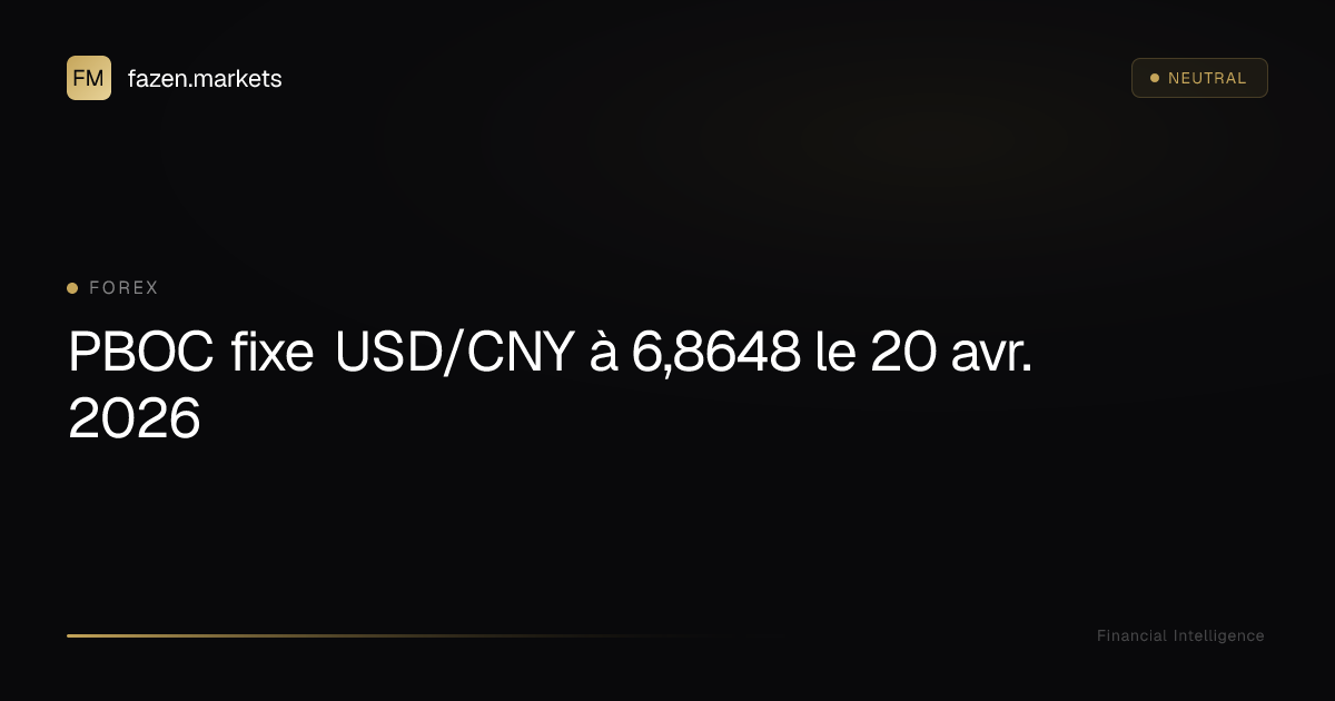 La Banque populaire de Chine (PBoC) devrait très probablement fixer le taux de référence journalier USD/CNY autour de 6.8291 le 20 avril 2026, selon une estimation de Reuters publiée à 00:21:41 GMT le 20 avril (Reuters, 20 avr. 2026). La fixation quotidienne, programmée à 01:15 GMT (21:15 heure de la côte Est des États-Unis) chaque jour de cotation, reste l'un des signaux les plus scrutés par les acteurs de marché car elle ancre les opérations onshore en renminbi dans une bande prescrite de plus ou moins 2% par rapport à ce point central (Reuters ; cadre de la PBoC). Le point central est déterminé à partir d'un ensemble d'éléments incluant le cours de clôture du jour précédent, les évolutions des principales devises et des objectifs de politique intérieure — un processus que la PBoC décrit comme discrétionnaire plutôt que purement mécanique. Pour les investisseurs institutionnels, le taux de référence influence la tarification au comptant, les forwards, les swaps de change et le marché obligataire onshore chinois où les anticipations de change se répercutent directement sur les courbes de rendement. Ce rapport dissèque les ingrédients de la fixation, quantifie les implications à court terme pour le change et les taux, et propose une perspective de Fazen Markets sur les réactions potentielles des marchés.