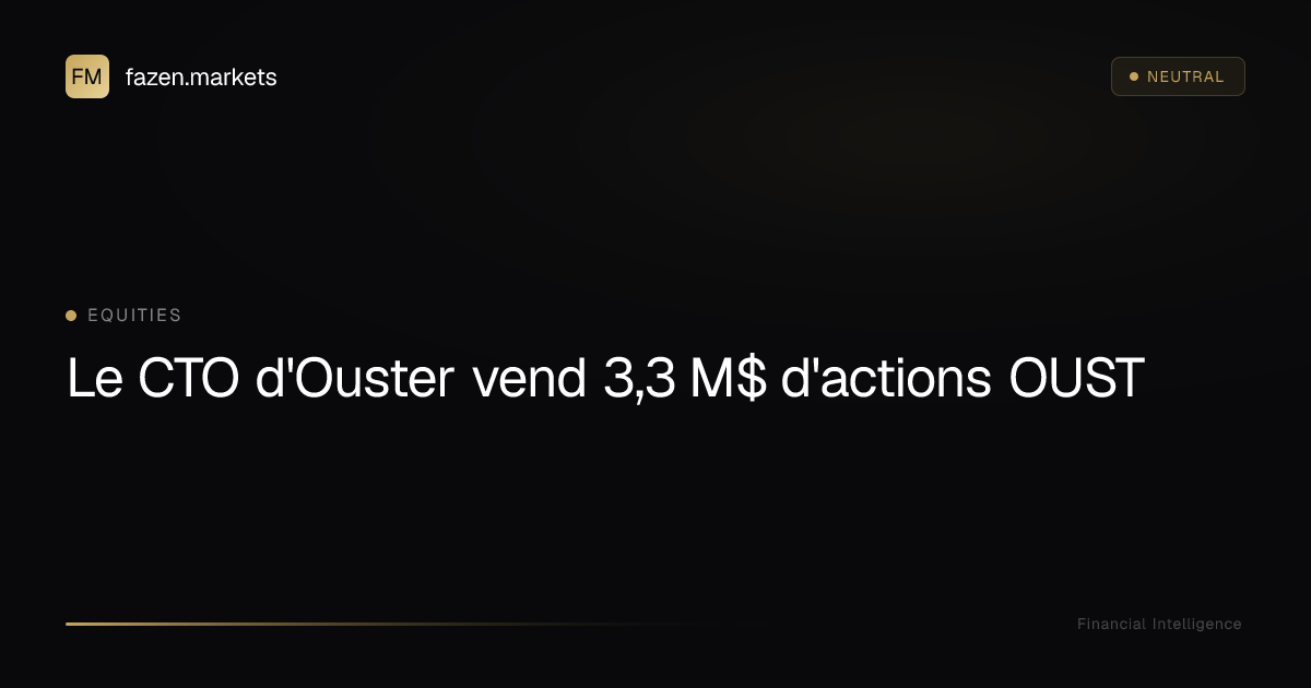 Le Formulaire 144 rapporté a été déposé le 21 avril 2026 (Investing.com, 21 avr. 2026), déclenchant la fenêtre de vente de 90 jours en vertu de la Règle 144 ; le marché surveillera donc l'activité jusqu'au 20 juillet 2026 pour les transactions liées à ce dépôt. La Règle 144 établit le déclencheur de déclaration de 5 000 actions ou 50 000 $ pour des cessions envisagées sur toute période de trois mois (Règle 144 de la SEC, 17 CFR 230.144). Ce sont des seuils stricts pour l'obligation de dépôt ; ils ne définissent pas la matérialité pour des participations institutionnelles mais fixent la base pour la divulgation publique requise par la loi.