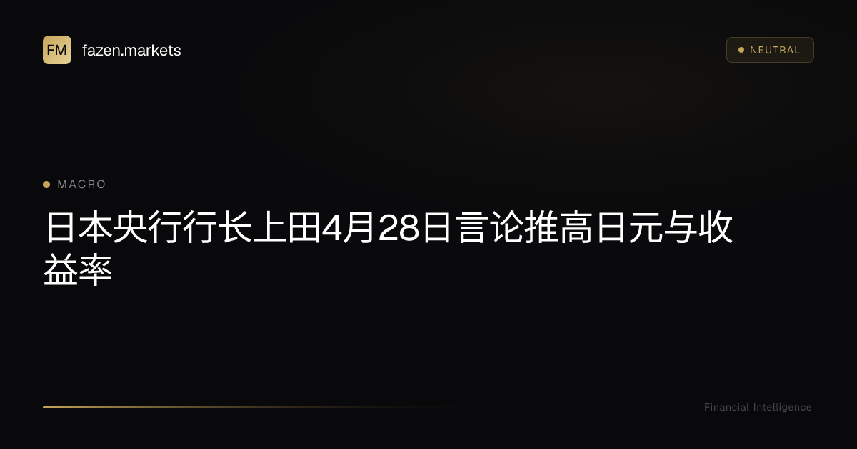 日本银行(BOJ)于2026年4月28日将短期政策利率维持在0.75%,但行长上田和夫(Kazuo Ueda)表示将继续朝着更高利率的路径前进,同时警告下一财政年度经济可能放缓。中央银行的政策声明及随后表决暴露出九人决策委员会内部的实质性分歧:6比3的投票分歧,委员高田(Takata)、田村(Tamura)和中川(Nakagawa)投票支持将利率上调至1.00%(InvestingLive,2026年4月28日)。日本银行明确将其展望以不存在重大供应链冲击为前提,并表示总体经济图景仍然“稳定”,尽管声明强调了来自中东及外部供应中断的风险。该决定使日本银行继续其渐进的正常化轨迹,但也突显了政策裁量的增强——该行将继续“根据经济、物价和金融状况的变化”调整货币支持。这一发展对日元流动性、日本国债收益率以及对借贷成本敏感的行业具有即时影响。